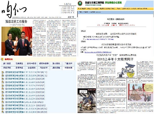 為了讓學生及時了解最新的國內外時事,學院在學生事務平臺開辟“形勢政策”版塊,各學生黨支部負責每日更新時政要聞,以實現形勢政策教育的常態化和系統化。3063黨支部小報《咱們》中“頭版頭條”、“國內時事”、“國際風云”版塊的內容更是受到了同學們的肯定和歡迎。