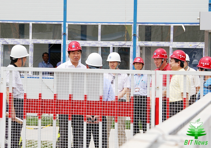 6月21日下午,北京理工大學黨委書記郭大成來到國防科技園建設工地檢查工作。陪同郭大成書記進行檢查的有理工資產經營公司、國防科技園項目部、監理單位、承建單位負責人。