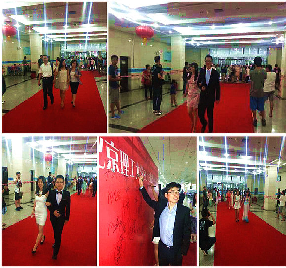 晚會為畢業(yè)生在體育館北廳精心準備了畢業(yè)晚會紅毯禮環(huán)節(jié)。200多名畢業(yè)生通過微博“搶票”的方式獲得了踏上紅毯的機會。紅毯禮上,畢業(yè)生們或只身盛裝出席,或宿舍好友共同見證,或與父母一同出場,依依惜別之情令全場感動。
