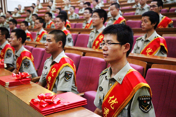 6月28日下午,北京理工大學2013屆畢業國防生歡送暨優秀國防生表彰大會在中教報告廳舉行。
