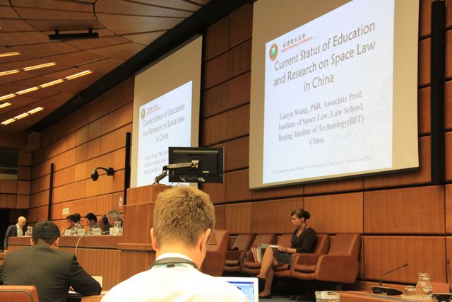 2013年6月12日至21日,聯合國和平利用外空委員會(UNCOPOUS)第56屆大會在奧地利維也納召開。受外交部邀請,北京理工大學空間法研究所副所長、法學院院長外事助理王國語副教授作為唯一來自高校的空間法學者參加了中國代表團出席會議,在大會上代表中國做題為“中國空間法教學和科研現狀”的報告,并作為聯合國外空委“外空活動長期可持續性”工作組中方談判專家參加了專家組的討論會,此外王國語還參加和發射國(美國、俄羅斯、法國、德國、中國、日本)關于日本代表團新提案的非正式磋商會議。