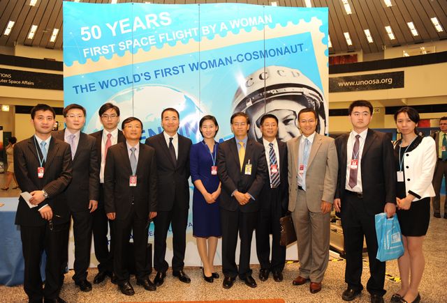中國常駐聯合國維也納代表團團長成竟業大使出任參加此次大會的中國代表團的團長,外交部條法司馬新民參贊任副團長,其余團員21人,分別來自外交部條法司、外交部軍控司、工信部、國防科工局、中國航天員訓練中心、北斗辦公室、中國航天科技集團、國家天文臺、北京理工大學和北京航空航天大學。此次會議的一個重要內容是慶祝人類首位女航天員進入外空五十周年的系列活動。我國首位進入外空的女航天員劉洋同作為中國代表團的成員出席了大會并作發言。