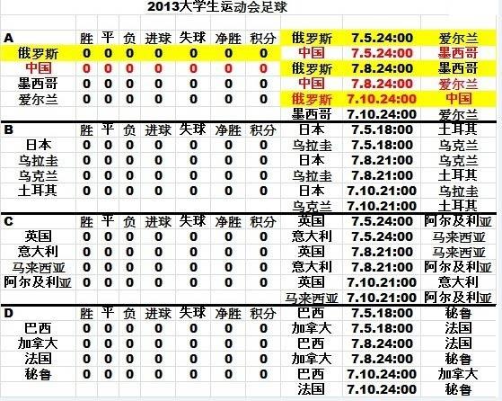 2013俄羅斯喀山大學生運動會男子足球賽程-(轉自維基百科)
