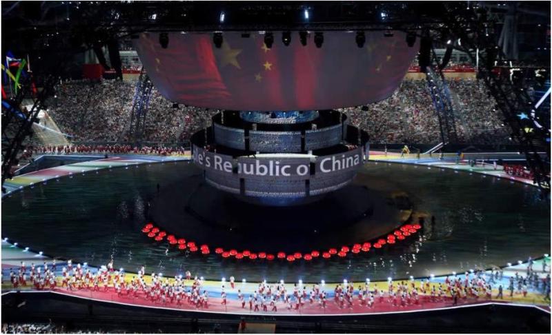 本次俄羅斯喀山大運會的開幕式別具特色,整個喀山體育場被打造成了一片湖泊,主舞臺似湖中小島,碗狀的巨型電子屏幕自穹頂垂下。俄羅斯總統普京在開幕式致辭說:“希望所有客人有回家的感覺!"。而在中國代表團入場時,來自北理工的球員盧斌作為中國男足隊長擔任此次中國大運代表團的旗手,在開幕式結束后,盧斌在個人微博上表示:“環顧了其他國家代表隊旗手,他們都是把國旗插在腰中的旗拖里走過會場的。入場的那一瞬間我就告訴自己,一定要雙手高舉五星紅旗,讓鮮艷的五星紅旗飄揚在世界的賽場上,完美的展現在世界人民的眼中,我做到了!”。