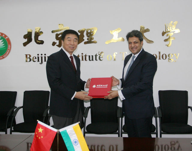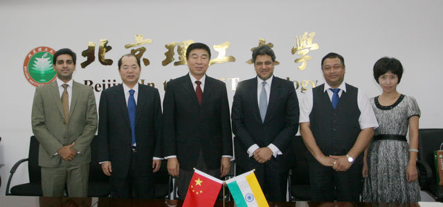 2013年7月16日下午,印度亞米提教育集團(Amity Education Group, India)代表團一行9人訪問北京理工大學。郭大成書記在2號樓211會議室會見了亞米提大學校長Aseem Chauhan。