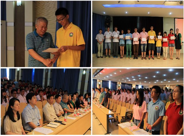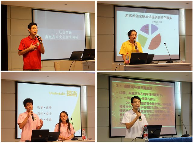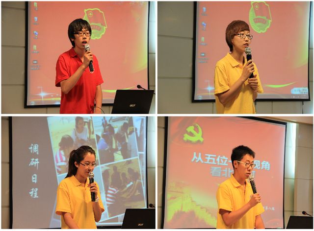 王豪同學和劉麗君老師分別作為學生代表和帶隊教師代表發(fā)言,分享了干訓中的收獲與體會。他們均表示通過本次干部培訓提升了自己的理論水平和工作能力,對今后的工作產(chǎn)生了有效推動。為進一步提高學生理論聯(lián)系實際的能力,本次干訓增加了理論學習環(huán)節(jié),組織學員們圍繞“矛盾論”、“論認識和實踐的關系”、“論中國夢”、“論青年”四單元開展學習討論,從而提高學員理論水平,培養(yǎng)學員發(fā)現(xiàn)問題、分析問題、解決問題的能力。在干訓社會實踐中,各小組結合“堅定信仰,共筑中國夢”的主題,結合實際運用理論知識對當前北戴河旅游等問題進行系統(tǒng)分析并給出相應對策。結業(yè)典禮上,六個小組依次進行了干訓期間理論學習和社會實踐的成果展示,現(xiàn)場掌聲不斷。