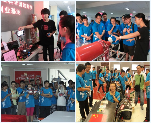 7月28日,徐特立科學(xué)營(yíng)組織營(yíng)員到良鄉(xiāng)校區(qū)參觀了創(chuàng)新工作坊。創(chuàng)新工作坊是培養(yǎng)學(xué)生科學(xué)意識(shí),提高學(xué)生實(shí)踐能力、創(chuàng)新能力和自身素質(zhì)的平臺(tái)。在參觀過(guò)程中,營(yíng)員們見(jiàn)識(shí)了具有北理工特色的無(wú)人機(jī)、智能機(jī)器人以及3D成像技術(shù),開(kāi)闊了眼界,增強(qiáng)了對(duì)科技創(chuàng)新的興趣。隨后,營(yíng)員們集體觀摩了宇航學(xué)院航模隊(duì)帶來(lái)的遙控紙飛機(jī)、3D特技飛行、模擬火箭發(fā)射返回和自制飛機(jī)表演,精彩絕倫的表演讓營(yíng)員們驚嘆不已。