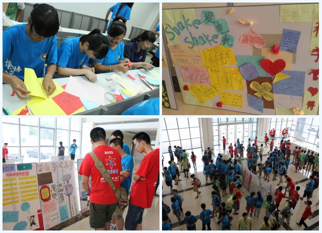 啟發(fā)培養(yǎng)實(shí)踐動(dòng)手能力是徐特立科學(xué)營(yíng)的一項(xiàng)重要任務(wù)。開(kāi)營(yíng)伊始,科學(xué)營(yíng)給每個(gè)小組布置了一項(xiàng)科學(xué)小任務(wù),鼓勵(lì)每個(gè)營(yíng)員動(dòng)手實(shí)踐,說(shuō)出自己的創(chuàng)新設(shè)想,完成自己的科技作品,提出對(duì)已有科技成果改進(jìn)的奇思妙想。在參觀實(shí)驗(yàn)室、創(chuàng)新工作坊等科技實(shí)踐活動(dòng)的熏陶下,各組營(yíng)員全員參與,集思廣益,積極投入到科學(xué)小任務(wù)的探究工作中,利用彩筆、彩紙等工具,將自己的科學(xué)夢(mèng)想繪制成精美的展板。在7月29日舉辦的“徐特立科學(xué)營(yíng)科技成果展示會(huì)”上,各組營(yíng)員通過(guò)對(duì)展板內(nèi)容進(jìn)行講解,展示小組風(fēng)采,放飛科技之夢(mèng)。