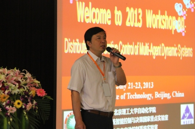 2013年7月21至23日,由北京理工大學(xué)自動化學(xué)院、復(fù)雜系統(tǒng)智能控制與決策國家重點(diǎn)實(shí)驗(yàn)室共同主辦的“2013 Workshop on Distributed Cooperative Control of Multi-Agent Dynamic Systems”在北京理工大學(xué)成功舉行,去年在我校成功舉辦了第一屆。
