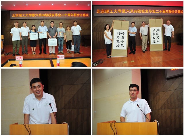 為報答學院和老師們的培養之恩,同學代表向老師們贈送了精心準備的按摩儀,向材料學院、化工學院贈送了同學代表親筆題寫的“情系母校 師恩難忘”、“飲水思源 立業思進”字幅。田煒同學代表組委會介紹了聚會籌備情況,張建軍同學代表返校校友做了發言。
