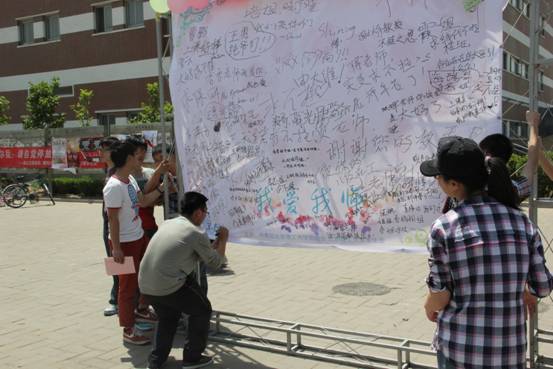 在外場活動中,全校同學在“愛師墻”上寫下對老師的祝福,把對辛勤工作在各個工作崗位上的老師們的感恩和喜愛都融匯在一行行真情涌動的文字中。短短的時間內,“愛師墻”上已密密麻麻寫滿了同學們對老師們的贊美和謝意。同時,學生會還向同學們發放了精美的賀卡,這些賀卡將由學生會的同學們仔細整理并分送到每位老師的手中,為老師送上同學們濃濃的祝福。活動的現場氣氛非常活躍,不少同學紛紛表示自己是發自內心的熱愛自己的老師。“愛師墻”和真情賀卡上,有“老師您辛苦了,祝生活幸福快樂”這樣樸實無華的話語,也有“老師,您的學生永遠愛您,尊重您”這樣感人至深的文字。話語雖不相同,但是目的都只有一個:將最真摯的祝福送給自己心愛的老師!