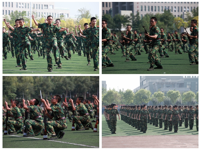 軍事科目表演中,由軍訓旅八個營組成的四個表演方陣,分別進行了匕首操、軍體拳、刺殺操和綜合格斗術等科目的表演。各表演方陣整齊劃一,出招迅速有力,動作標準到位,贏得了主席臺領導及嘉賓的陣陣掌聲。