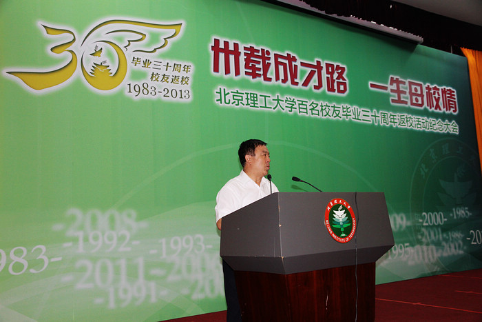 2013年9月14日,北京理工大學“卅載成才路 一生母校情”1983屆百名校友畢業30周年返校活動紀念大會在中心教學樓報告廳隆重舉行。校黨委書記郭大成,副校長、校友總會常務副會長兼秘書長楊賓,黨委副書記、副校長李和章,原學校黨委書記、對外工作委員會主任焦文俊,原學校校長匡鏡明,中國工程院院士周立偉教授,光電學院倪國強教授出席了大會。學校各機關部處有關領導、各專業學院負責人、來自全國各地的一百余名1983屆校友代表、部分教師和學生代表500余人參加了大會。大會由校友總會常務副會長兼秘書長楊賓主持。