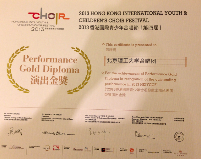 此次北理工學生合唱團赴港比賽,得到了學校985港澳臺項目的大力支持,是我校學生對外交流的一次有益嘗試,是落實學校的第十三次黨代會提出的“擴展國際視野,實施開放發展戰略”重要舉措。今后,圍繞學校人才培養國際化程度的不斷深入,學校大學生藝術團將積極爭取在更高更廣闊的國際舞臺上為母校爭得榮譽,為文化交流做出貢獻。