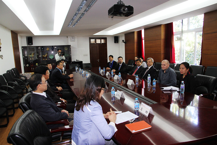 在訪談活動開始之前,北京理工大學(xué)黨委書記郭大成、學(xué)校辦公室主任郝志強、黨委宣傳部部長劉明奇、生命學(xué)院院長鄧玉林、國際交流合作處副處長高珊、校團(tuán)委副書記方蕾、宇航學(xué)院教授崔平遠(yuǎn)、信息與電子學(xué)院教授吳嗣亮等與美國航天員Leroy Chiao一行進(jìn)行了親切座談。郭大成代表學(xué)校對航天員的到來表示熱烈的歡迎,他介紹了北京理工大學(xué)的基本情況以及學(xué)校近幾年在航天航空技術(shù)方面的科研成果,并對以后的深入合作表示誠摯的邀請。
