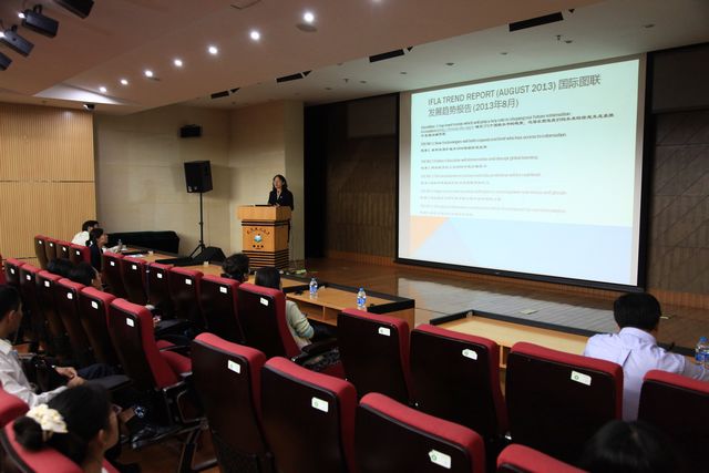 阮煉博士做了題為《美國學術圖書館的發展和未來趨勢》的報告,介紹了伊利諾伊大學香檳厄巴納分校中國圖書館員暑期項目開展情況及效果,并就中美圖書館間國際合作項目的實施和開展進行交流。