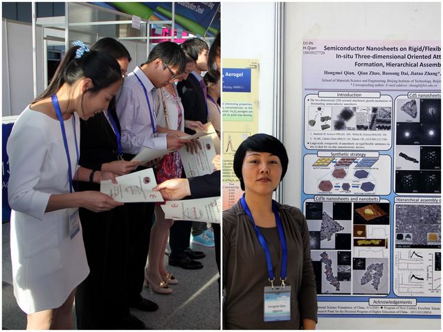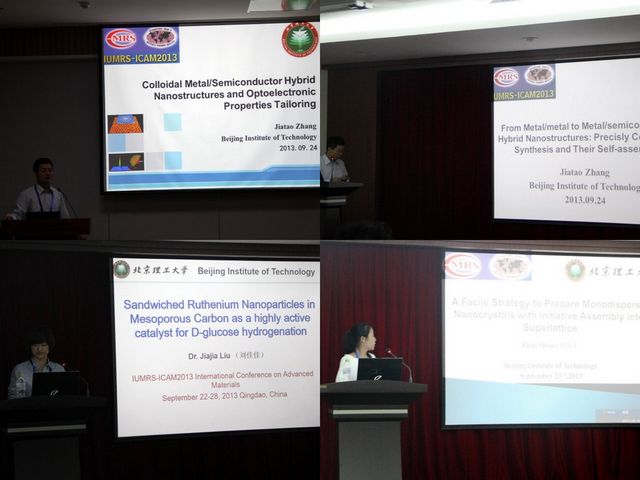 北理工材料學院張加濤教授帶領研究團隊應邀參加了本次大會,并參與組織了納米分會。張加濤教授分別在不同的分會做了題為“From metal/metal to metal/semiconductor hybrid nanostructures: Precisely controlled synthesis and their self-assembly” 和“Colloidal metal/semiconductor hybrid nanostructures and optoelectronic properties tailoring”的兩個邀請報告。團隊成員劉佳佳老師及研究生趙倩分別在納米分會做了口頭報告,研究生錢紅梅做了poster報告。