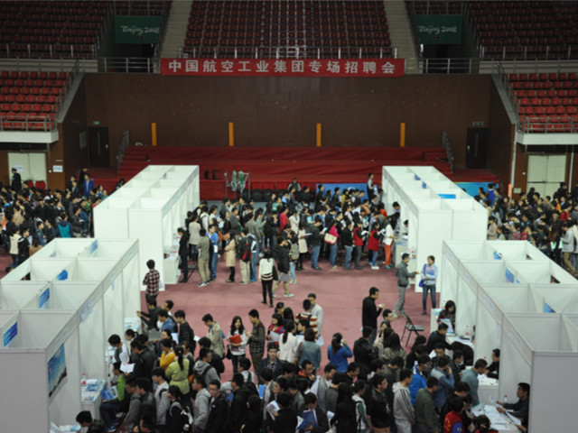 2013年10月11日,我校在體育館主館舉辦“中國航空工業集團專場招聘會”,沈陽飛機工業(集團)有限公司、哈爾濱飛機工業集團有限責任公司、成都飛機工業集團有限責任公司等中國航空工業集團下屬78家單位參會,提供就業崗位約4000個。