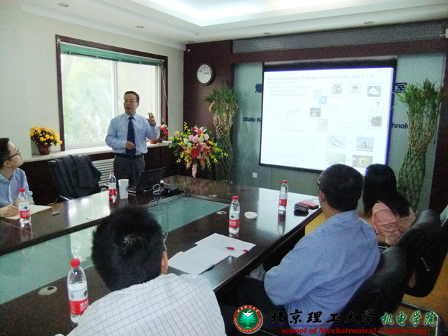 在外專局常規項目“無縫連續控制面柔性翼飛行器飛行動力學建模與控制問題研究”的資助下,英國Cranfield University的Guo Shijun 教授順利完成在北京理工大學機電學院訪問交流,訪問期間郭教授為我校師生開展了學術講座并進行了學術報告,與相關專業的教師開展了學術交流活動。
