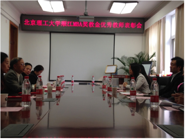 北京理工大學管理與經濟學院第六屆順江MBA獎教金優秀教師表彰會于2013年10月18日舉行。出席會議的有獲獎教師和學院黨委書記李金林、MBA教育中心副主任趙玉煥和佟巖、部分MBA授課教師及學生代表,會議由佟巖主持。