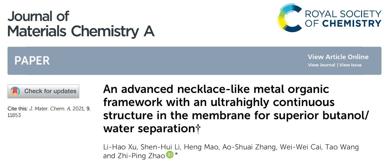 編輯:隆哲源 審核:王振華 閱讀次數(shù):近日,北京理工大學(xué)化學(xué)與化工學(xué)院博士生徐李昊以第一作者身份在國際頂級期刊Journal of Materials Chemistry A上發(fā)表題目為“An advanced necklace-like metal organic framework with an ultrahighly continuous structure in the membrane for superior butanol/water separation”的研究論文。北京理工大學(xué)為唯一通訊單位,化學(xué)與化工學(xué)院先進功能膜與膜過程團隊趙之平教授為通訊錄作者。本研究得到國家自然科學(xué)基金重點項目(21736001)資助。
