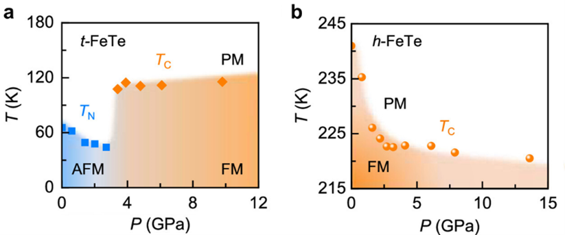 圖1. 極端高壓下的二維t-FeTe和h-FeTe。