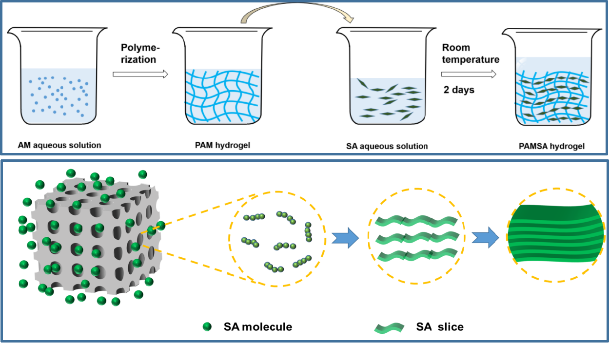 編輯:肖雯 審核:周連景 閱讀次數:海藻酸鹽水凝膠是一種具有3D多孔網絡結構的軟材料,其在生物醫學、光、電、載體等許多領域有著廣泛的應用。但是,海藻酸鹽水凝膠大多力學強度較低,使用過程易發生機械損傷且損傷后性能大大降低,無法繼續滿足使用要求。因此,發展并制備具有自愈合性能且具有高強度的水凝膠多功能材料具有十分重要的意義。