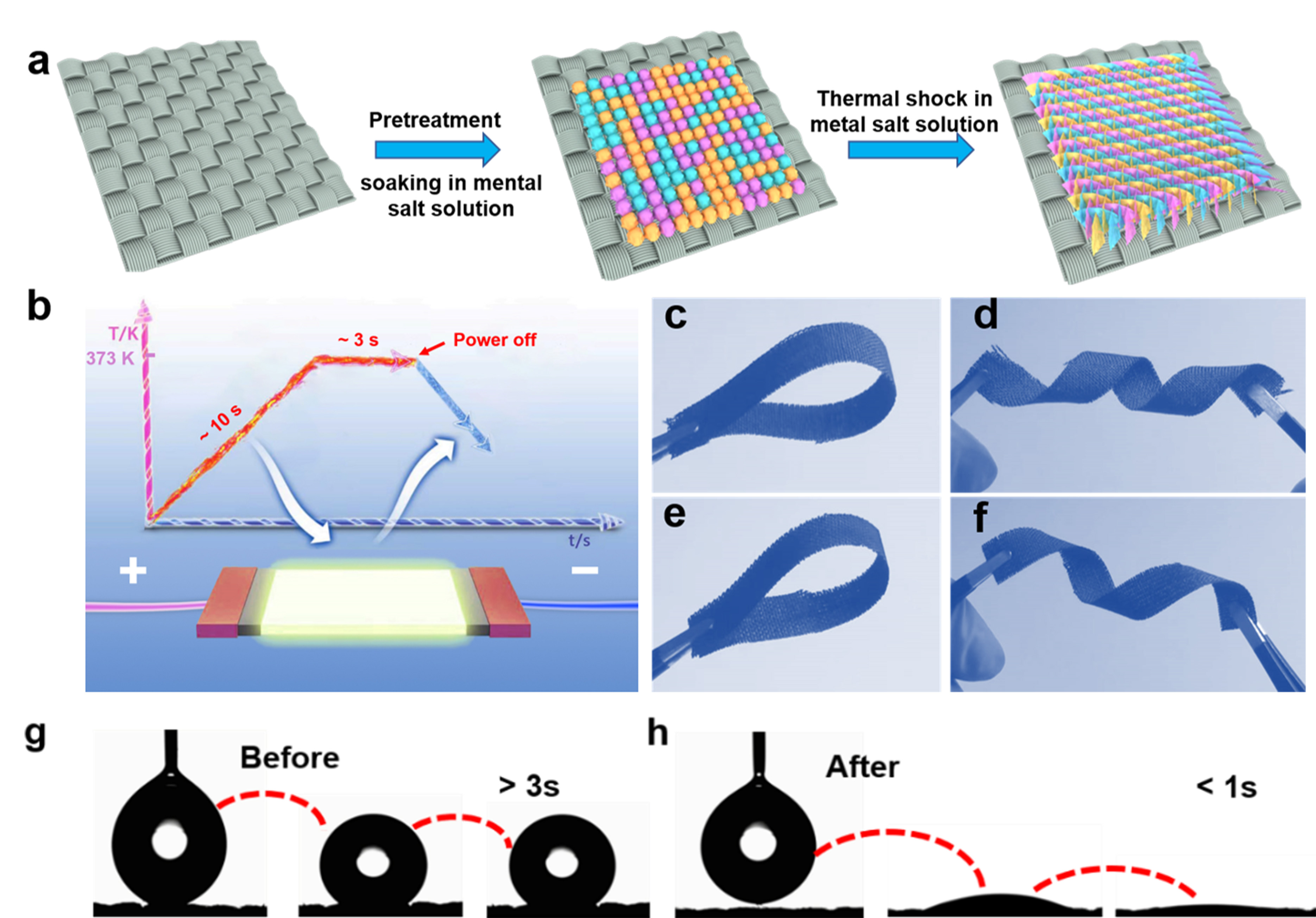 圖1 熱沖擊制備示意圖以及樣品柔性和親水性展示