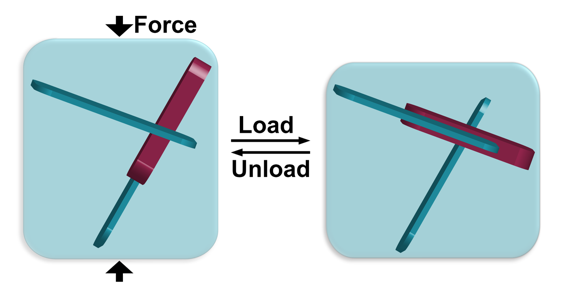 該材料利用晶態“陀螺”受力下的繞軸旋轉,實現了單晶材料的超彈形變,并發現了新的力-光耦合作用方式,揭示了晶態分子“陀螺”轉動與材料力學性質之間的重要作用,同時力-光性質的耦合有望應用于光學調控及通訊領域。