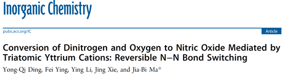 編輯:段凱龍 審核:王振華 閱讀次數:硝酸是重要的工業產品。目前,商業硝酸是通過Haber–Bosch工藝和Ostwald氧化過程組成的兩步法生產的。利用N2和O2直接制NO最有利且最直接的方法。由于該反應的高吸熱性(+43.1 kcal/mol),致使在溫和條件下N2和O2反應生成NO幾乎是不可能的。北京理工大學馬嘉璧教授課題組近日在熱化學條件下,通過純金屬Y3+陽離子與一個N2分子和兩個O2分子的反應,實現了利用純金屬團簇室溫偶聯N2和O2的反應。相關成果以“Conversion of Dinitrogen and Oxygen to Nitric Oxide Mediated by Triatomic Yttrium Cations: Reversible N–N Bond Switching”為題,發表在國際權威期刊《Inorganic Chemistry》(2023, 62, 6102–6108)?;瘜W與化工學院博士生丁永奇為第一作者,馬嘉璧教授為論文的通訊作者。特別感謝化學與化工學院的謝靜教授團隊(英飛同學)對本工作在高精度理論計算數據的指導和幫助。