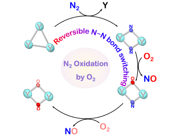 圖1:Y3+陽離子團簇與N2和O2反應示意圖。
