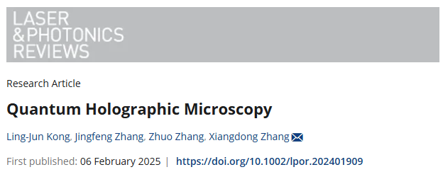 編輯:王莉蓉 審核:陳珂 閱讀次數:近日,北京理工大學物理學院張向東教授課題組基于偏振糾纏量子全息技術,實現了量子全息顯微。相關成果以“Quantum Holographic Microscopy”為題發表在Laser & Photonics Reviews 期刊[Laser Photonics Rev. 2025, 2401909]上。北京理工大學物理學院孔令軍研究員、張景風博士生為該論文的共同第一作者,北京理工大學物理學院張向東教授為論文通訊作者,北京理工大學物理學院張卓研究生也為該工作做出了重要貢獻。該研究工作得到了國家自然科學基金委的支持。