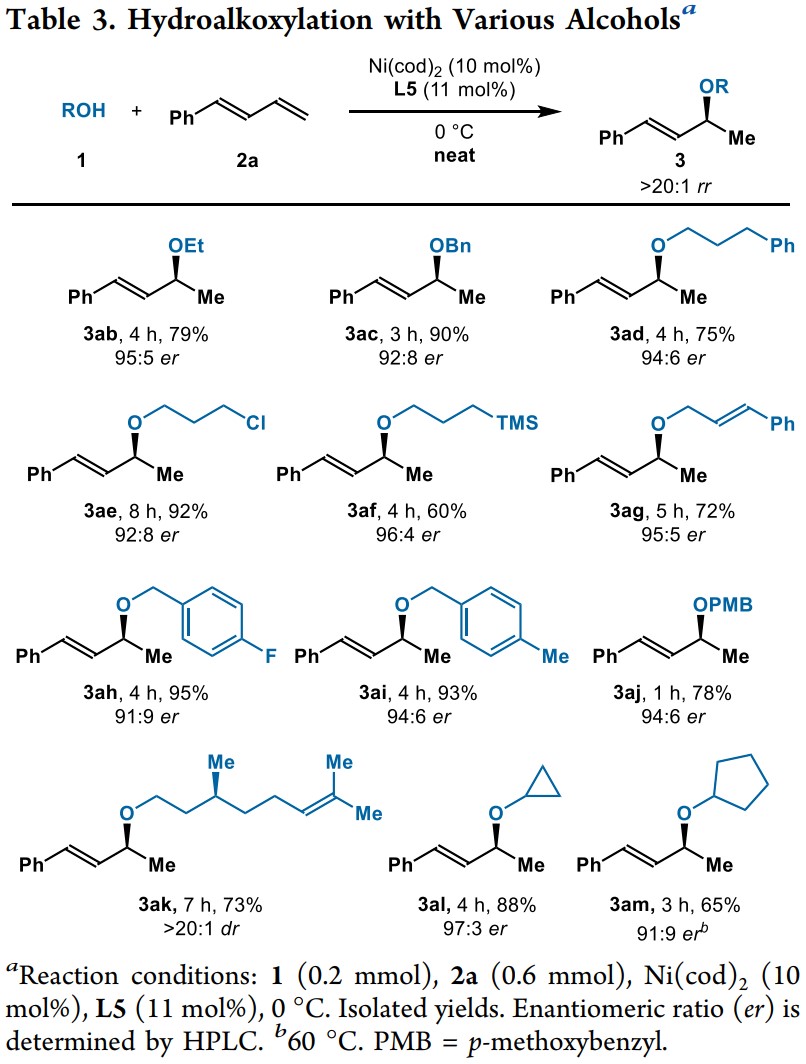 北理工課題組在Ni催化1,3-二烯不對稱氫烷氧化反應方面取得重要進展