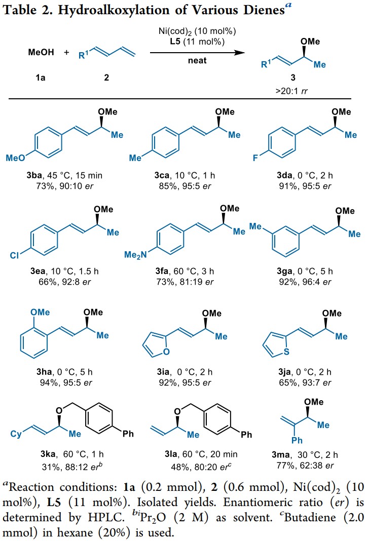 圖2. 不同類型1,3-二烯的氫烷氧化反應
