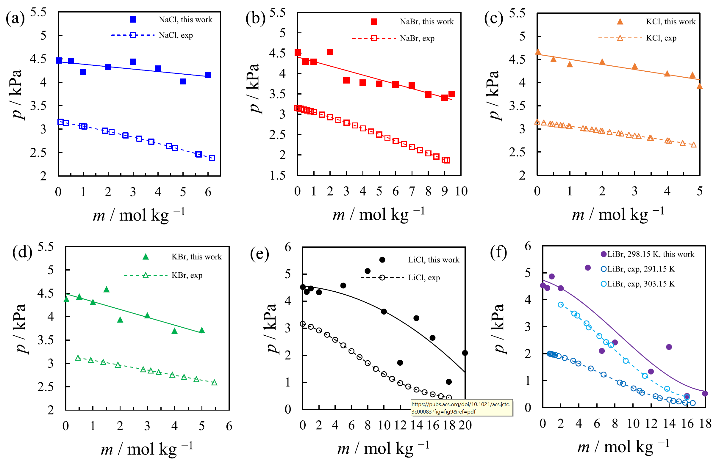 圖2 電解質(zhì)溶液體系蒸汽壓分子動力學(xué)計算結(jié)果