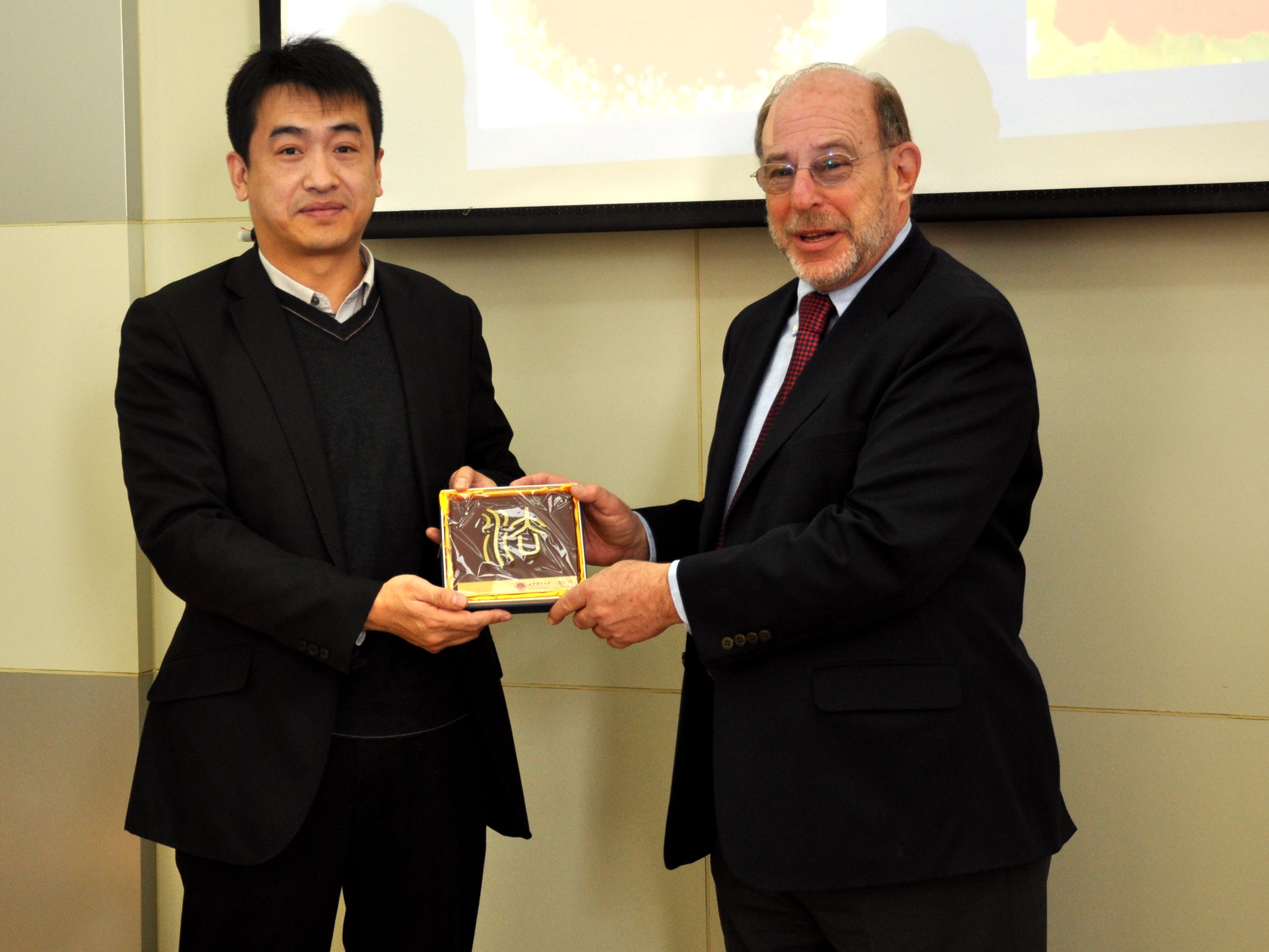 法學院黨委書記楊海代表法學院向Dr. Henry R. Hertzfeld教授贈送了具有北理工法學院特色的禮物,并表示Dr. Henry R. Hertzfeld教授具有深厚理論研究功底和豐富的實踐經驗,是學校師資力量的寶貴財富,希望能與法學院教師共同研討法律問題,對法學專業同學進行專業上的指導和幫助。