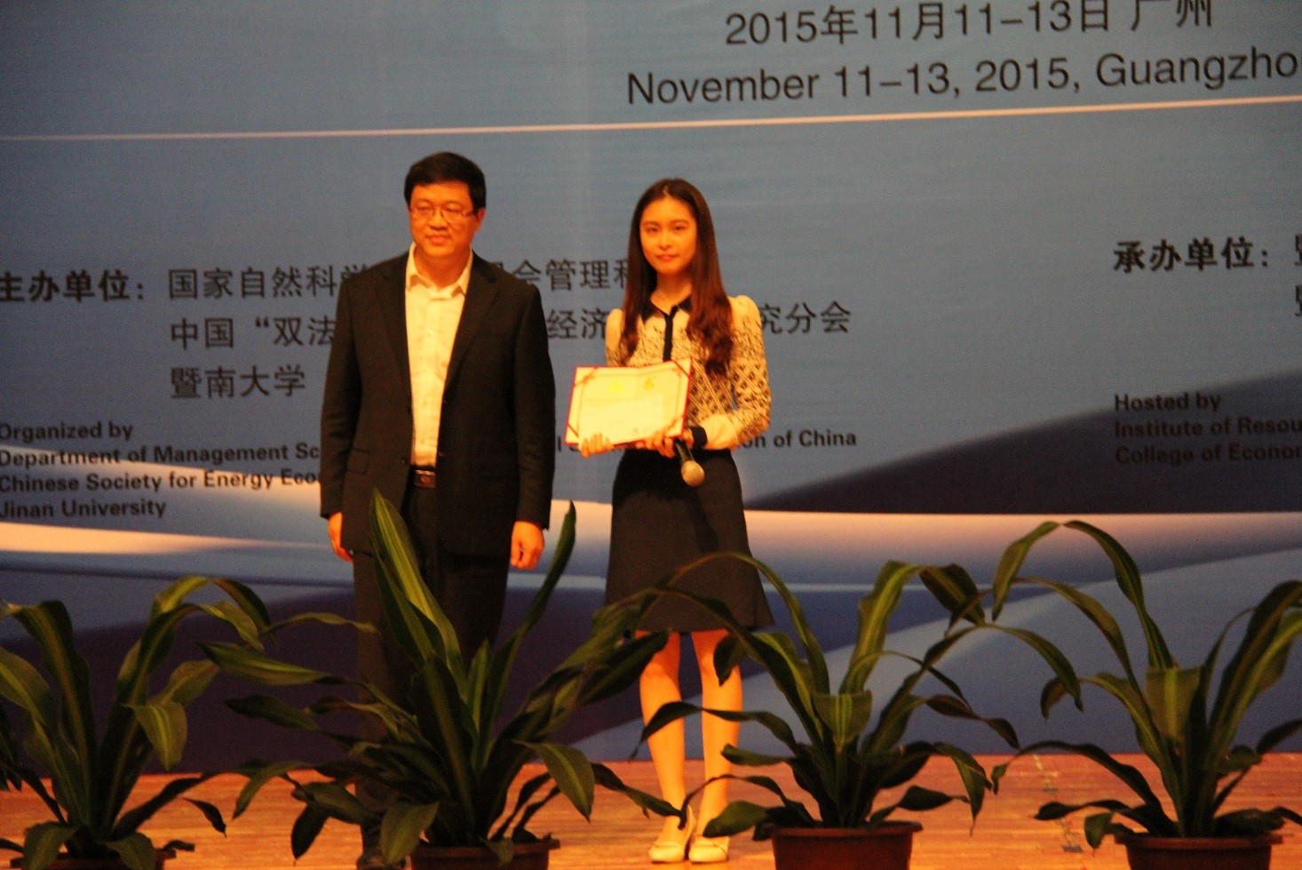 第六屆中國能源經(jīng)濟與管理學術年會是由國家自然科學基金委員會管理科學部、中國“雙法”研究會能源經(jīng)濟與管理分會、暨南大學聯(lián)合主辦。本次“中國能源經(jīng)濟與管理忠慧優(yōu)秀研究生論文獎”設一等獎1篇、二等獎3篇、三等獎8篇。12名獲獎研究生分別來自清華大學、南京大學、中國科學院大學、北京理工大學、大連理工大學等11所高校。