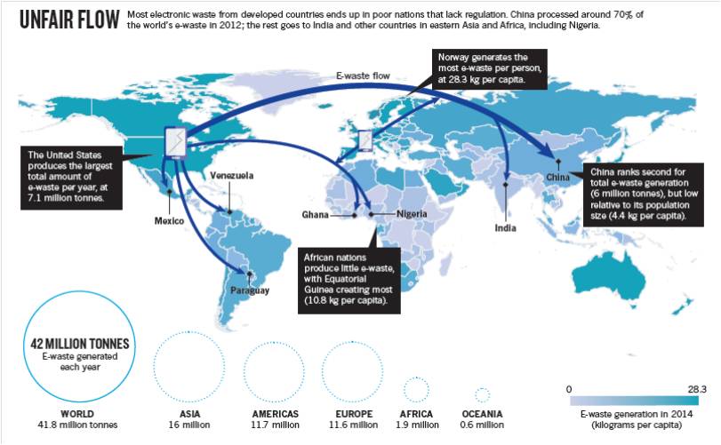 全球電子廢棄物流向示意圖