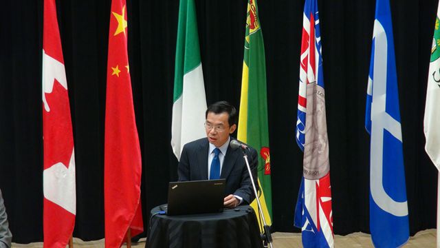 薩斯喀徹溫大學孔子學院中方院長、北京理工大學外語學院副教授劉寧(右下)分別致辭