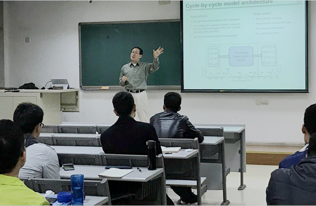 作為北京理工大學的客座教授,朱國明教授直接參與了機械與車輛學院研究生課程《動力機械控制工程》的授課及課程建設,本次授課已經是他第三次參與該課程的教學活動,朱教授以他在內燃機燃燒過程閉環控制領域的最新研究成果為例,為學生講授了面向控制的建模和基于模型的控制。使得同學們在課程內容學習的同時,分享到了內燃機控制領域的前沿科技成果,也使得參與聽課的學院其他研究生受益匪淺。
