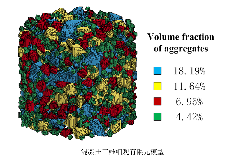 考慮骨料、砂漿及二者之間的ITZ創建了混凝土的三維三相細觀隨機骨料模型。詳細介紹了隨機多面體骨料的生成和投放方法、ITZ的生成方法以及如何通過網格投影法生成混凝土細觀有限元模型的過程。在實驗和反復數值模擬的基礎上,確定了適當的混凝土內各成分的HJC材料模型參數。