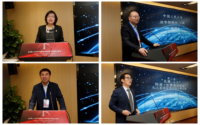 來自全國科技與法律領域的各界專家、學者100多人齊聚北京理工大學,暢談“無人系統應用中的法律問題”,就前沿科技發展與未來研發和應用中可能涉及的法律問題進行了深度研討。學校紀委書記楊志宏、中國法學會研究部副主任彭伶、中國人民大學法學院院長王軼、我校法學院院長李壽平參加了論壇并致辭,我校法學院黨委書記張瑜參加了論壇。開幕式由北京理工大學法學院副院長于兆波主持。
