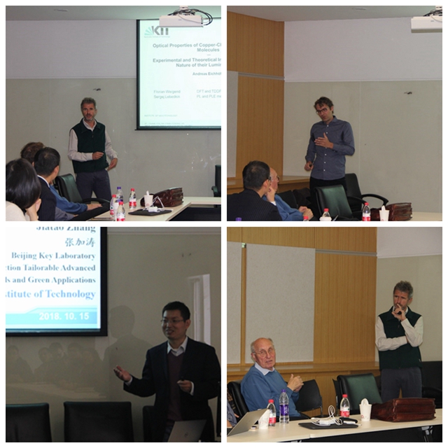 編輯:邵澤 審核:張青山 閱讀次數:應材料學院結構可控先進功能材料與綠色應用北京市重點實驗室,北理工—昆士蘭能源材料聯合研究中心主任張加濤教授的邀請,德國科學院院士卡爾斯魯厄理工大學Dieter Fenske教授、Andreas Eichhoefer研究員、德國馬爾堡菲利普斯大學Robert Langer教授于2018年10月15日至18日來北京理工大學材料學院進行學術交流。