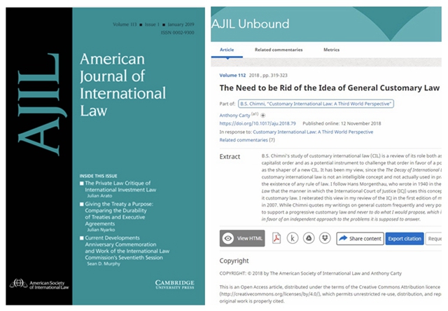 Anthony Carty教授在美國(guó)國(guó)際法雜志上發(fā)表的The Need to be Rid of the Idea of General Customary International Law一文指出,利用作為法律淵源的國(guó)際習(xí)慣認(rèn)為國(guó)際社會(huì)已經(jīng)就適用于特定群體的世界秩序達(dá)成了一致,這是用理想主義的方式而不是實(shí)證主義方法。Carty認(rèn)為,國(guó)際社會(huì)最好承認(rèn)國(guó)際共同體是深深的基于多元化而形成的,盡管在人們能夠基于合作與伙伴關(guān)系建立一個(gè)共同國(guó)際秩序之前,理解與尊重各國(guó)人民之間的差異,是一個(gè)痛苦的過(guò)程。
