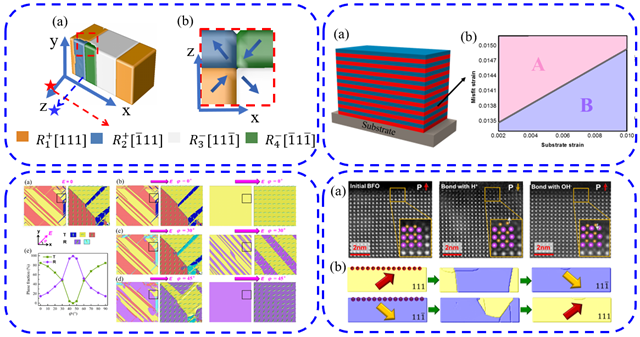 圖1 表面電荷誘導鐵電渦旋疇,鐵電超晶格結構中的寬溫區電卡效應,鐵電疇翻轉和相變提升壓電效應,表面電荷翻轉極化強度