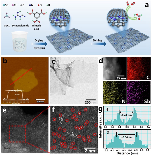 圖1 Sb SAs/NC單原子催化劑的形貌表征