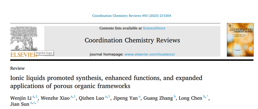 編輯:肖雯 審核:周連景 閱讀次數:近日,北京理工大學綠色生物制造團隊與吉林大學陳龍教授團隊合作在離子液體促進多孔有機框架材料合成、功能與應用方面發表綜述文章,相關研究成果以“Ionic liquids promoted synthesis, enhanced functions, and expanded applications of porous organic frameworks”為題發表于國際頂級期刊《Coordination Chemistry Reviews》,該工作以2021級博士生李文瑾、2022級博士生肖文哲、2021級碩士生羅啟臻為共同第一作者,通訊作者為吉林大學陳龍教授和北京理工大學孫劍教授,北京理工大學為第一通訊單位。