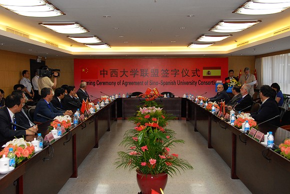 我校高度重視與西班牙大學的合作交流工作。我校與西班牙馬德里理工大學自2005年8月開始在協議框架下開展了一系列的卓有成效的交流活動。2008年9月,我校又與西班牙第一大銀行——西班牙桑坦德銀行(Banco Santander, S.A.)簽署了合作協議,正式加入西班牙桑坦德銀行開展的“馬克·波羅計劃”,成為桑坦德銀行在中國的第一批合作高校。我校與西班牙的緊密的合作交流有力地促進我校與歐洲及南美洲高校的交流。在此良好的合作基礎上,我校作為北京市高校引智研究會理事長單位,積極推動北京市高校與西班牙高校之間的交流與合作,此次論壇的舉辦以及中西大學聯盟協議的簽署也為雙方院校的合作搭起了正式的橋梁。
