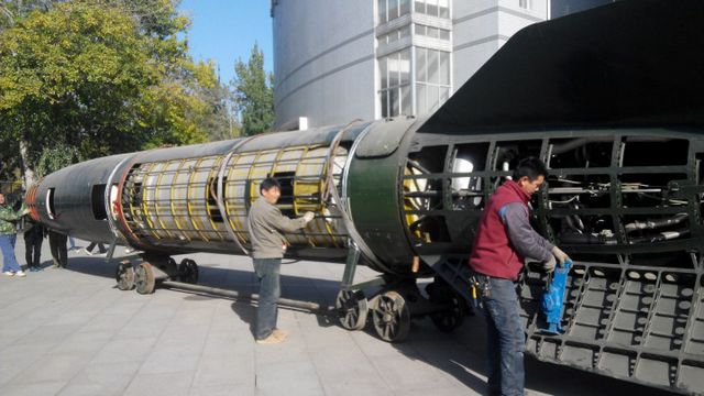 11月20日,北理工宇航學院根據學校建設整體工作的安排,進行實驗室搬遷,當重達十幾噸的導彈被放在了專用滑軌車上,緩緩地推出實驗室,穿過校園的時候,引發了網上網下的一片關注和熱烈討論,畢竟在平日書聲瑯瑯的校園中,突然驚現一枚龐然大物的導彈,還是不多見的。關注的師生們一邊驚嘆于導彈的龐大與精致,也產生了不少疑問:“這枚導彈是什么來歷呢”“這枚導彈和北理工之間有什么聯系呢?”“導彈上面怎么開了這么多小窗口呀?”帶著這些疑問與好奇,記者采訪了宇航學院榮吉利副院長和黨委宣傳部副部長、校史館館長王民。