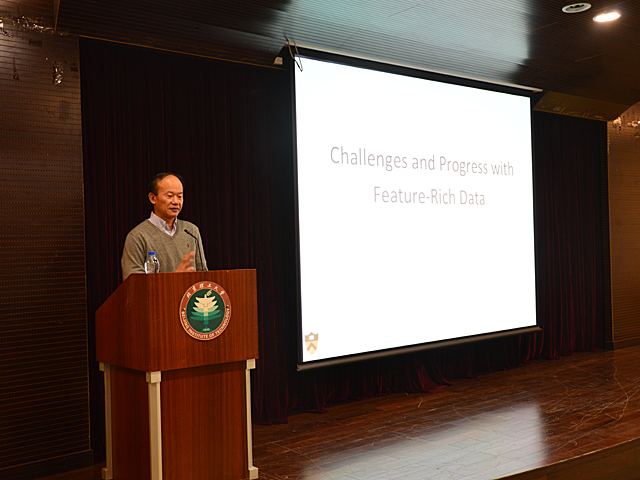 李凱教授是美國國家工程院院士,其研究領(lǐng)域主要包括并行和分布計算、存儲系統(tǒng)、面向大型多屬性數(shù)據(jù)集的分析、搜索和可視化等,在信息處理領(lǐng)域享有極高的國際聲望。在當(dāng)前的大數(shù)據(jù)時代中,數(shù)據(jù)規(guī)模巨大而且特征豐富,“維度災(zāi)難”問題會導(dǎo)致傳統(tǒng)研究方法的失效。作為計算機學(xué)院“青春•信仰•陽光”主題教育活動的組成部分,學(xué)院邀請李凱教授針對上述問題為大家進(jìn)行講座,分析處理多特征數(shù)據(jù)所面臨的挑戰(zhàn),并展示其團(tuán)隊的相關(guān)研究和成果。